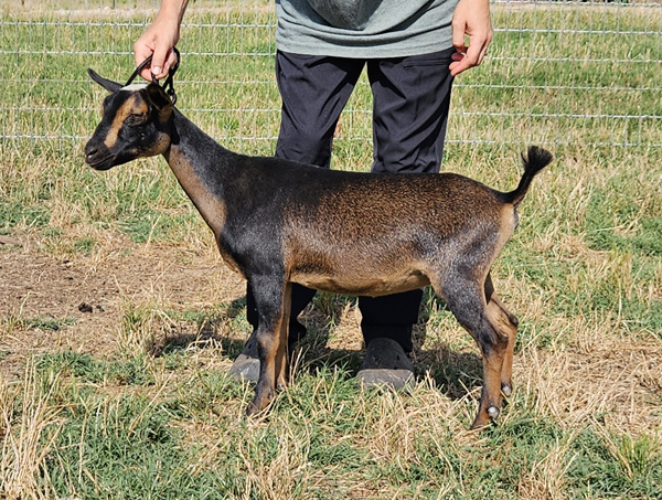 Sire's Sire: ELITE Sinai Thunder O Exodus *B *S (SG/ELITE CEDAR VIEW OLIVERO ++*B ++*S 90EX,VEV88 2018-2023 ADGA ELITE BUCK (10+ TIMES) x SG Kaapio Acres HH Redemption *M *DAR VEEE90 ADGA Elite Doe, ADGA & AGS Nat'l Top 10 Milk Awards, AGS Breed Leader 4x Record setting in Overall Score and Production (8.1#), 1380# (305 Days))