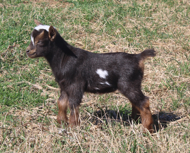 DOB: 3/7/2026 Doeling - Sells with ADGA registration app. Dark chocolate or black and white with several moonspots. (Southern Grace Cross My Heart x Sinai Thunder Love Me Tender "Lottie") |
