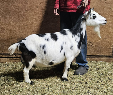 DOB: 1/6/2026 Doeling - Sells with ADGA registration app. Black & white. (Southern Grace Bayou Brigade *B x Southern Grace Coriander) |