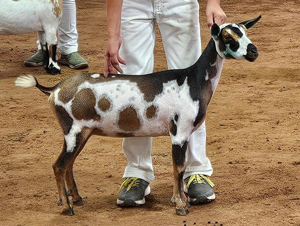 Sire's Sire: ELITE Sinai Thunder O Exodus *B *S (SG/ELITE CEDAR VIEW OLIVERO ++*B ++*S 90EX,VEV88 2018-2024 ADGA ELITE BUCK (14+ TIMES) x SG Kaapio Acres HH Redemption *M *DAR VEEE90 ADGA Elite Doe, ADGA & AGS Nat'l Top 10 Milk Awards, AGS Breed Leader 4x Record setting in Overall Score and Production (8.1#), 1380# (305 Days))