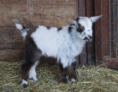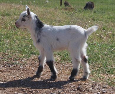 DOB: 1/6/2026 Doeling - Sells with ADGA registration app. Black & white. (Southern Grace Bayou Brigade *B x Southern Grace Coriander) |